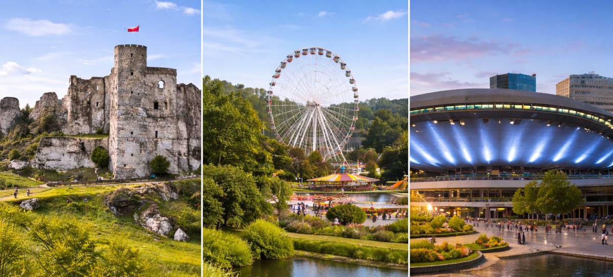 - Chorzów – miasto kojarzone z Parkiem Śląskim, Planetarium Śląskim oraz atrakcjami rodzinnymi.