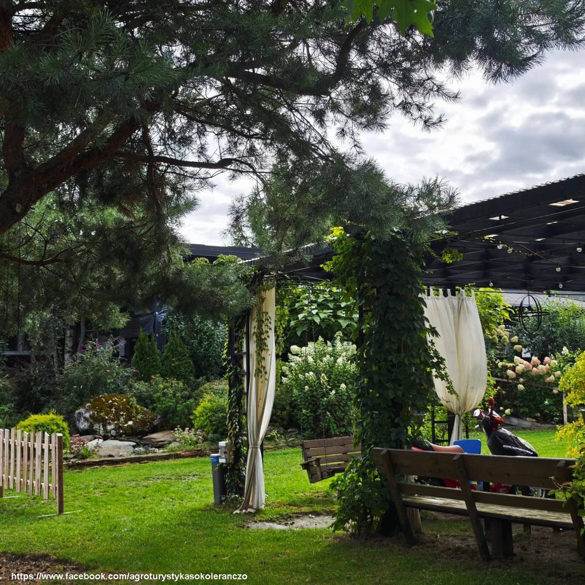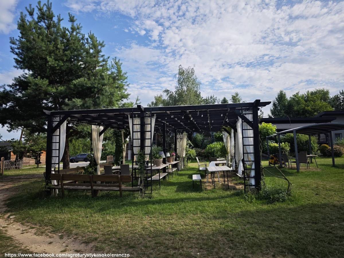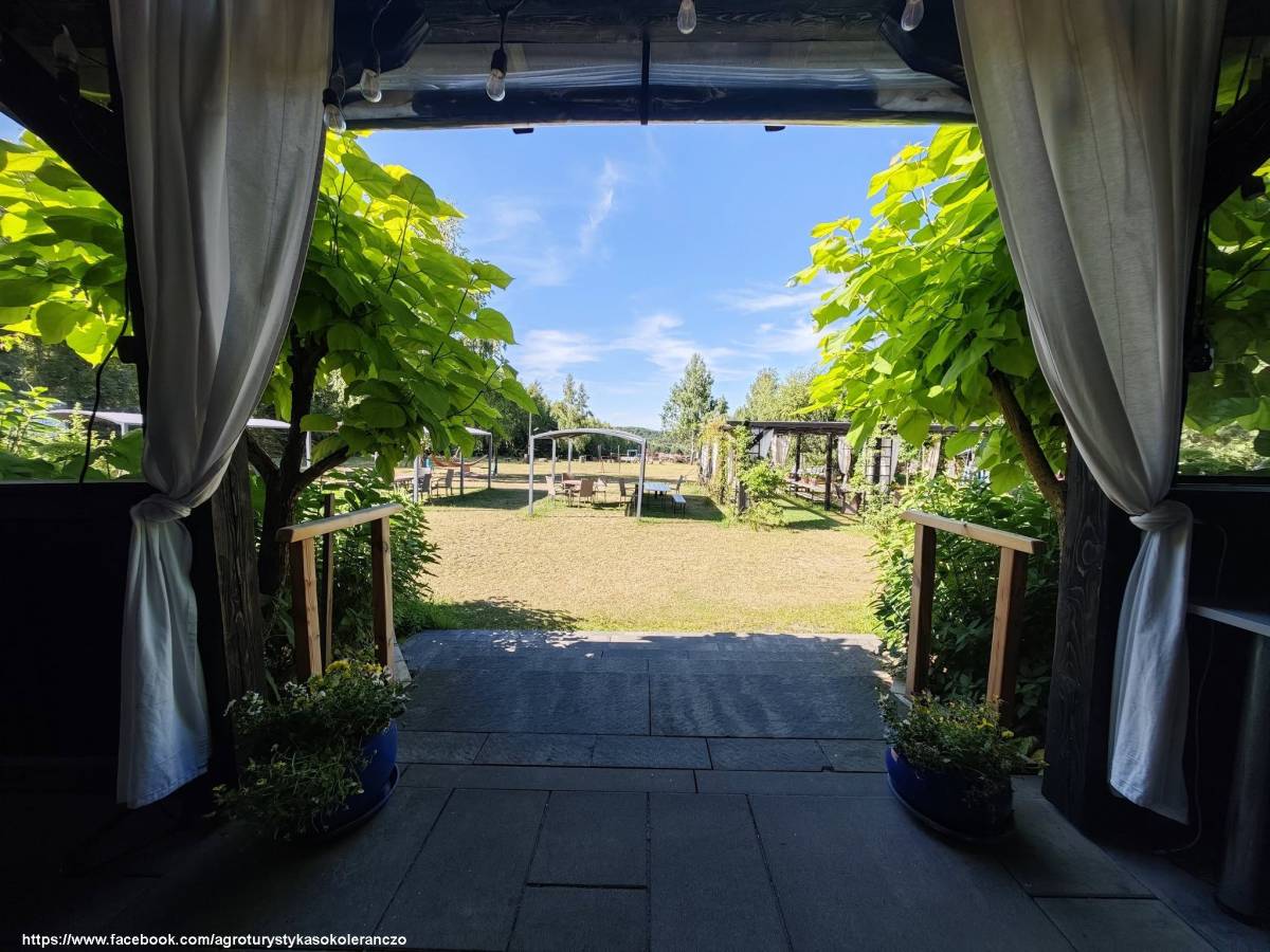 Goście mogą zatrzymać się w apartamentach i domkach o unikalnym wystroju. Duży apartament składa się z trzech pokoi – nadmorskiego, pod kogutkiem i różanego – i oferuje dziewięć miejsc noclegowych. Dla poszukujących prywatności przygotowano apartament słoneczny oraz domki: fiołkową, kasztanową i anielską laubę. Każde z wnętrz zostało urządzone z dbałością o szczegóły, w duchu tradycji i ciepła domowego ogniska. Na terenie gospodarstwa znajduje się także grillowisko, miejsce na ognisko, plac zabaw, parking oraz ekologiczny ogród.